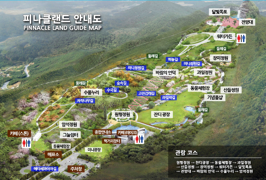 피나클랜드에서는 알파카, 사슴, 그리고 민속양을 먹이 주는 체험뿐만 아니라, 식물을 심는 체험 프로그램도 마련되어 있습니다. 방문객들은 동물과 소통하며 자연과의 조화를 느낄 수 있습니다.